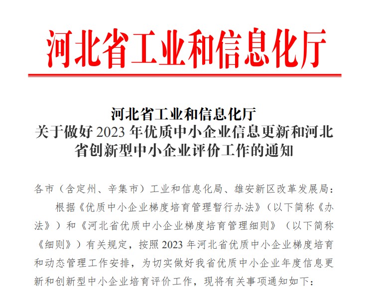 关于做好2023年优质中小企业信息更新和河北省创新型中小企业评价工作的通知