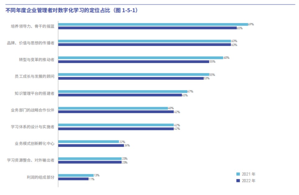 1.5将数字化学习视为业务部门战略合作伙伴的企业比例同比提升
