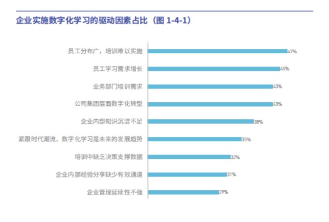 1.4业务部门培训需求成为驱动企业数字化学习实施的第三大因素