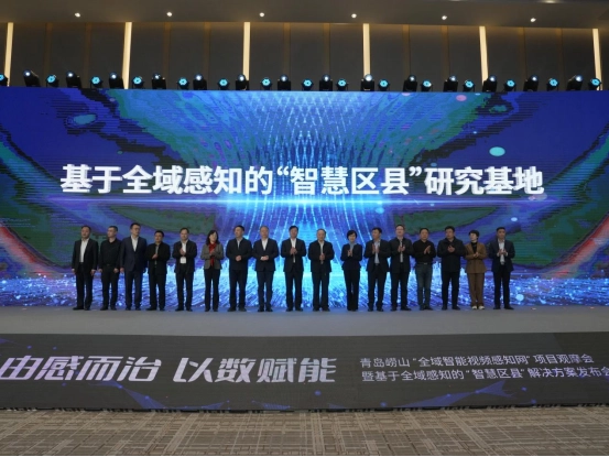 “基于全域感知的智慧区县”解决方案的发布是本次会议的重头戏。在发布环节,两家企业以“由感而治、以数赋能”为主题,紧扣数字中国国家战略、紧贴数字经济时代主题、紧跟数字政府现实需求,全面总结青岛崂山“全域智能视频感知网”建设经验,创新提出了由两家央企引领、专业与地方公司共建、“基于全域感知的智慧区县”的开放式、创新型解决方案。