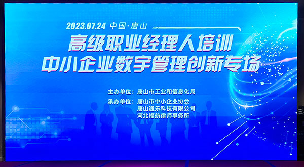 2023年7月24日,唐山市工业和信息化局成功举办了“唐山市高级职业经理人培训—中小企业数字管理创新专场”培训活动,该活动旨在贯彻《河北省县域特色产业集群“领跑者”企业培育行动方案》和《河北省职业经理人培育工作方案(2020-2025年)》,为唐山市中小企业管理层提供数字化转型与管理创新的知识与指导。经过一天的精彩授课,培训取得圆满成功,吸引了众多中小企业高层管理人员的积极参与。