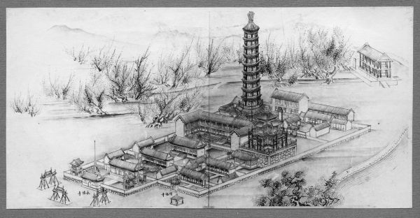 此外,美国洛克菲勒档案中心所藏的一份《避暑山庄分景图》中永佑寺建筑群的绘画非常珍贵,图中大量细节与历史记载有诸多的吻合,建筑的体量层数,甚至屋顶形式,大多能与其他资料吻合上。